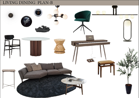 すでにお決まりのソファやラグの大きな面積のカラーとトーンを基準に、
